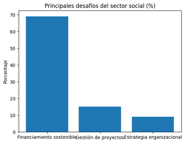 | El estudio identifica que la falta de financiamiento sostenible limita el crecimiento de las organizaciones sociales. También se observan debilidades en gestión institucional y planificación estratégica. |